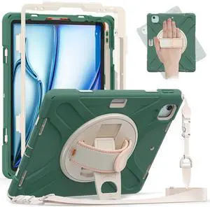 Batianda Case for iPad Air 13 inch 2025 2024 M3/M2 Chip Heavy Duty Rugged Durability Silicone Tablet Cover with 360 Rotating Hand Strap Foldable Hidden Stand & Shoulder Strap, Sea Green