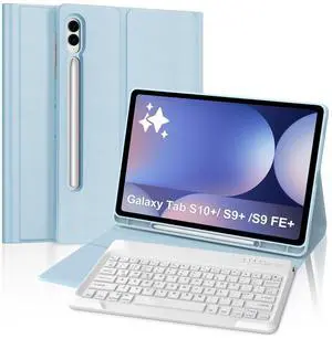 NUWONAYA Keyboard Case for Galaxy Tab S10 Plus/S9 Plus/S9 FE Plus/S8 Plus/S7 Plus/S7 FE 12.4 Inch, 7 Color Rainbow Backlight Detachable Magnetic Keyboard Cover with S Pen Holder,Teal