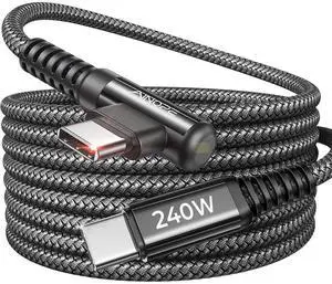 AINOPE 240W USB C to USB C Cable Fast Charging 15FT,Right Angle Fast Type C Charging Cable Fits iPhone 16 Pro Max Plus,iPhone 15,MacBook Air/Pro,iPad Pro,Samsung,Pixel,All Devices, Black, 1 Pack