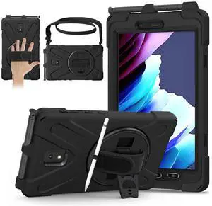 AOOCSHEY for Samsung Galaxy Tab Active3/Active5 8.0 Case, Full Body Heavy Duty Rugged Shockproof Silicone Drop-Proof Kids Friendly Protective Cover with Rotating Stand Hand Strap Shoulder Strap, Black