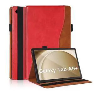 TIPOYOROO Case for Samsung Galaxy Tab A9 Plus 11 Inch 2023 Released (Model: SM-X210/X216/X215) Bussiness Premium PU Leather Cover Lightweight Flip Stand with Elastic Band & Card Holder- Red