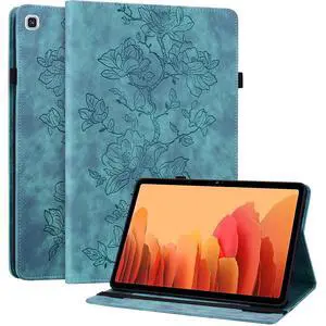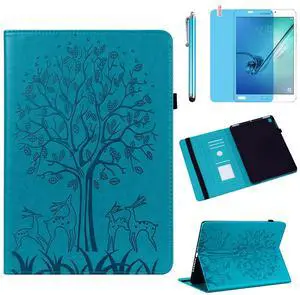 Case for Samsung Galaxy Tab A 9.7 inch 2015 (SM-T550 T555 SM-P550 P555), PU Leather Soft Silicone Back Cover Card Holder Stand Case, with Stylus Pen,Screen Film (Tree Blue)