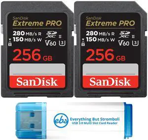 SanDisk (2 Pack) SDXC Memory Card 256GB UHS-II Extreme Pro V60 for Photo and Video (SDSDXEP-256G-GN4IN) Bundle with 1 Everything But Stromboli Micro & SD Card Reader