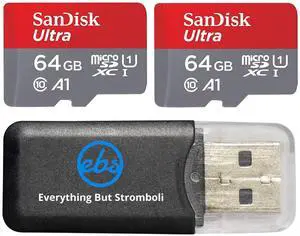 Sandisk Ultra micro SDXC Micro SD UHS-1 TF Memory Card 64GB 64G (Two Pack 64GB x2 =128GB) Class 10 w/ (1) Everything But Stromboli Memory Card Reader