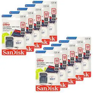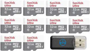 Sandisk 32GB 32G Micro SDHC Ultra (10 Pack) MicroSD TF Flash Memory Card High Speed Class 10 SDSQUNB-0032G-GN3MN with Everything But Stromboli Memory Card Reader