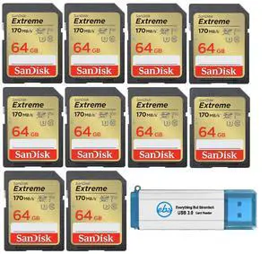 SanDisk 64GB Extreme SD Card (10 Pack) SDXC Memory Cards Compatible Browning Defender Pro Series Trail Cameras (SDSDXV2-064G-GNCIN) Bundle with (1) Everything But Stromboli 3.0 Micro & SD Card Reader