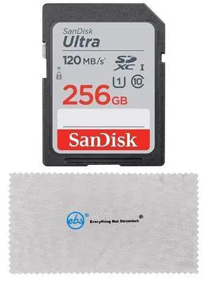 SanDisk SD Ultra Memory Card Works with Canon EOS M200, M100, M50, M5, M6 Mirrorless Camera (SDSDUN4-256G-GN6IN) Bundle with (1) Everything But Stromboli Micro Fiber Cloth (Class 10 256GB)