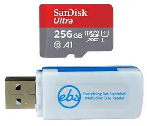 SanDisk MicroSD 256GB Ultra Memory Card Works with Wyze Cam v3 Pro, Wyze Cam Outdoor v2 Smart Camera (SDSQUAC-256G-GN6MN) Bundle with (1) Everything But Stromboli Micro SDXC & SD Card Reader
