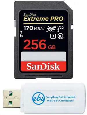 SanDisk Extreme Pro 256GB SD Card for Nikon Camera Works with Nikon Z50, Z5 Mirroless, D780 Digital DSLR (SDSDXXY-256G-GN4IN) Bundle with (1) Everything But Stromboli Micro & SDXC Memory Card Reader