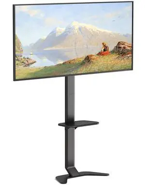 AOKCOS Minimalist TV Stand for 32-65 Inch TVs up to 88lbs, Swivel TV Floor Stand Height Adjustable, Space Saving Modern TV Mount Stand for Living Room/Bedroom, MAX VESA 600x400mm
