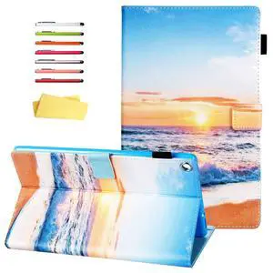 UUcovers for Kindle Fire HD 10 Case 10.1 inch Tablet 9th/7th Generation (2019/2017) with Pencil Holder/Card Pockets [Auto Wake/Sleep] Smart Magnetic PU Leather Folio Stand Cover, Beach Sunrise