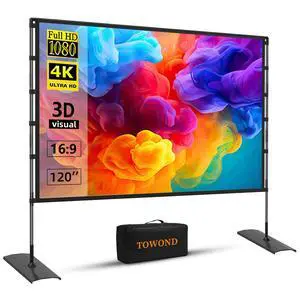 TOWOND Projector Screen and Stand, 120 inch Outdoor Projector Screen Indoor, Portable Movie Screen 16:9 4K Front Rear Projection Screen with Carry Bag Wrinkle-Free Design for Home Backyard Theater