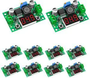 hiBCTR 10 Packs LM2596 Adjustable DC-DC Step Down Buck Power Convert Module 4.0-40V Input to 1.25-37V Output with LED Voltmeter Display