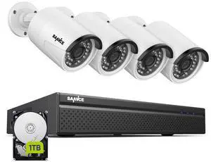 SANNCE 8CH 4K PoE Home Security Camera System, 4pcs Wired 3MP Outdoor PoE Cameras, 3MP 8-Channel NVR Security System with 1TB HDD for 24/7 Recording, Smart Playback, Instant Email Alert with Images