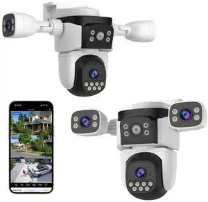 EVERSECU Triple Lens WiFi PTZ Security Camera, Three Cameras in One, Side Cameras with Adjustable All-Angle Arm, 2K 360 View No Blind Spot, Auto Tracking, Spotlight, 2 Way Audio2pack