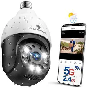 SYMYNELEC 5GHz/2.4GHz Light Bulb Security Camera Outdoor Waterproof 2.5K, Dual-Band WiFi Light Socket Security Camera with AI Human Motion Detection Tracking 4MP Color Night Vision Siren Alarm Alexa