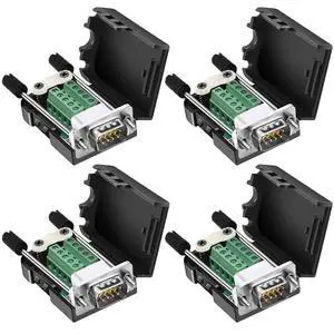 DaFuRui DB9 Male Connector4Pack DB9 Breakout Connector Solderless RS232 D-SUB DB 9 Male Screw Terminal Block with Case Long Bolts Tail Pipe