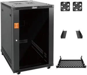 Tecmojo 18U Wall Mount Rack,18U Rack 17.7 Inch Depth,Hold Up to 176 Lbs,Movable Enclosed Rack Kit for 19 Inch Network,Server and AV Gear,Glass Door(Elite Collection)