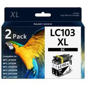 Lamburee LC103XL Ink Cartridge Replacement for Brother LC103 XL LC101 Work with MFC-J870DW MFC-J475DW MFC-J6920DW MFC-J6520DW Printers (2 Pack, Black)