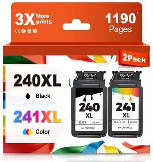 240XL 241XL Ink Cartridge Replacement for Canon Ink 240 241 PG-240 CL-241 XL Cartridges for MG3600 MG3620 TS5120 TS5100 MG3220 MG3520 MG2120 MX452 MX512 MX532 (Black Tricolor,2-Pack)