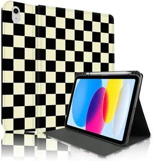TopPerfekt Case for iPad 11th (A16) 11-inch 2025 / 10th Generation 10.9-inch 2022, Pencil Holder Anti Slip Shockproof for Kids, Female, Male, Plaid Cute Chic Checkered Series Black - Beige