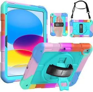 LTROP Case for iPad (A16) 11th Generation 11 Inch 2025/ 10th Generation 10.9 Inch 2022, Strong Protective Shockproof Cover with Rotating Kickstand Shoulder Hand Strap Stylus Holder, Colorful Turquoise