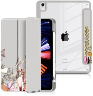 Batianda Hybrid Case for New iPad 11 2025 A16 Chip/iPad 10 2022 10.9-inch [Built-in Pencil Holder] Shockproof Cover with Clear Transparent Back Shell TPU Bumper,Auto Sleep/Wake, Flowers