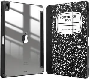 Fintie Hybrid Slim Case for iPad Air 13-inch (M3) 2025, (M2) 2024 - [Built-in Pencil Holder] Shockproof Cover with Clear Transparent Back Shell, Composition Book