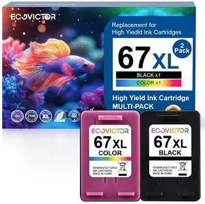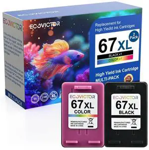 EcoVictor Remanufactured 67XL Ink Cartridge Replacement for HP Ink 67 XL Ink Cartridges Black/Color Combo Pack for HP DeskJet 4155e 4255e 2755e 2700 4100e 2800e Envy 6000 6055 6400 6055e 6455e Printer