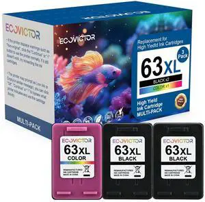 Eco Victor 63XL Ink Cartridges Replacement for HP Ink 63 XL (2 Black and 1 Color Combo 3-Pack) for HP63 HP63XL 3830 4650 4520 4512 4510 4652 4655 5200 5255 5252 5258 3630 3632 2132 1112 2130 Printer
