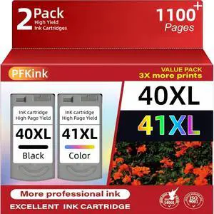 PFKink 40XL 41XL Compatible Ink Cartridge Replacement for Canon Ink 40 41 Combo for IP2600/1800/1700/1600, MX310/300, MP470/460/450/210/170/160/150/140/180/190, JX200/210P(1Black, 1Tri-Color)