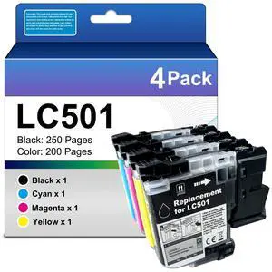 KANTEN LC501 Ink Cartridge (Black:250 Pages,Color:200 Pages) Compatible for MFC-J1260DW MFC-J1360DW MFC-J1410DW Printers -4Pack (Black Cyan Magenta and Yellow)