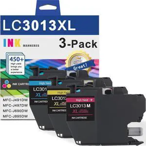 MANNERES LC3013 Color Ink Cartridges High Yield LC30133PKS XL (LC3013C LC3013M LC3013Y) - Replacement for Brother LC3013 Ink Cartridges Work with MFC-J491DW MFC-J497DW MFC-J690DW MFC-J895DW Printer