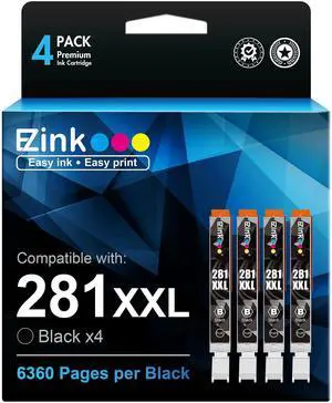 E-Z Ink Compatible Ink Cartridge Replacement for Canon 281 281XXL CLI-281XXL CLI-281 XXL Compatible with PIXMA TR7520 TR8520 TS6120 TS6220 TS6320 TS8120 TS9120 TS9521C TS702 Printer (4 Black)