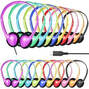 CNSZSLZ USB C Headphones Bulk 20 Pack for Classroom School Kids,USB Type C Headphones Class Set Compatible with Pad Smartphones (Mixed Colors)