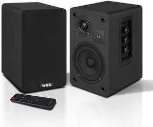 WMQ 60W Powered Bookshelf Speakers, 4" Carbon Fiber Woofer & 1" Tweeter, USB-C/RCA/AUX Input, Small Display Screen, 4 Ohm Impedance, for Turntable, TV, PC, Desktop, Smartphone (Black)