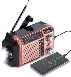 Hand Crank Emergency Weather Radio with 2600mAh/9620mWh Power Bank, NOAA AM FM Shortwave Portable Radio, Solar & USB-C Charging, Flashlight, SOS Alarm for Emergency Kits (Brown)