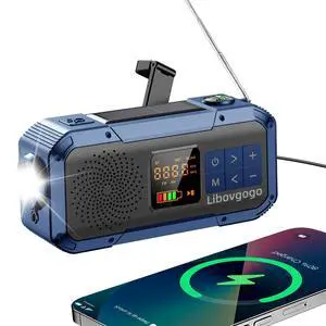 Emergency Weather Radio with IPX5 Waterproof Portable Bluetooth Speaker,USB-C Solar Hand Crank,NOAA Alarm AM FM Radio,Flashlight,SOS Alarm,2000mAh Cell Phone Charger for Camping and Survival (Blue)