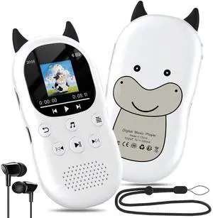 64GB mp3 Player for Kids with Bluetooth 5.3,Child Music Player with Speaker, FM Radio, Voice Recorder, Alarm Clock, Stopwatch, One Click to Play, Expandable up to 128GB,Cute Cow Shape, Free Lanyard