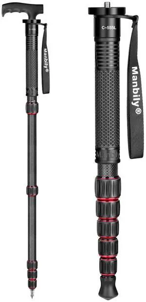 Manbily Carbon Fiber Camera Monopod, Portable Compact Lightweight Travel Monopod with Walking Stick Handle for DSLR Canon Nikon Sony Video Camcorder, 28mm Thick Leg, Max Load 22 lbs/10kg