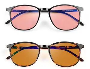 R.F.YFQH 2 Pack Indoor Fluorescent-41 Pink & Outdoor Fluorescent-60 Brown Tinted Blue Light Blocking Glasses for Migraine, Light Sensitivity, Photophobia & LED Gaming Computer Screen Glare JF6222