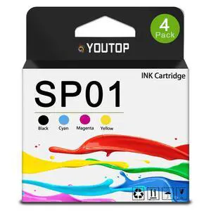 YOUTOP SP01 SP-01 SP-1 Sublimation Ink Cartridge SP01XLBK SP01CS SP01MS SP01YS Ink Cartridge Works for SP-1 Sublimation Inkjet Printer(4 Pack)