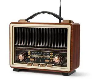 Retro Radio Bluetooth Speaker with Stereo Sound, AM FM Radio Portable with Loud Volume, Rechargeable Speaker (Black)