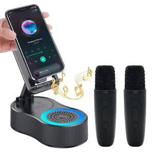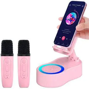 Christmas Birthday Gifts for Women Stocking Stuffers , Cell Phone Stand with Wireless Bluetooth Speaker, Colorful Ambient Light 360 Foldable for Tablet iPhone Android 2 Wireless Microphones for Kids