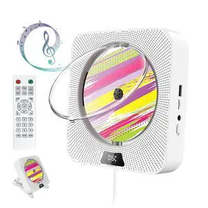 Portable CD Player with Bluetooth, Wall Mountable CD Player with Dust Cover,FM Radio,Built-in Speakers,USB Port,AUX Input,LCD Display