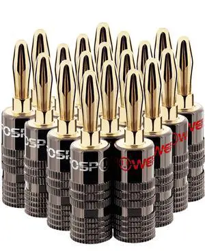 FosPower Banana Plugs 10 Pairs / 20 pcs, Closed Screw 24K Gold Plated Speaker Plug Connectors for Speaker Wire, Wall Plate, Home Theater, Audio/Video Receiver, Amplifiers and Sound Systems