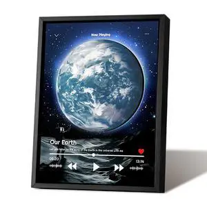 Music Picture Frame Bluetooth Speaker - Rotating Turntable Wireless Speaker Song Plaque, Light Up Music Plaque Art Paintings Frame with LED Light, Home Desk Decor Gifts for Men & Women (Earth)