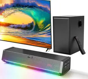 TV Speakers, Home Theater Speaker Wireless Audio Soundbar TV Speaker + Bass Subwoofer Wired Connect, Bluetooth Enabled/Optical/AUX/COAXIAL Inputs with Remote Control