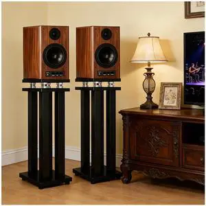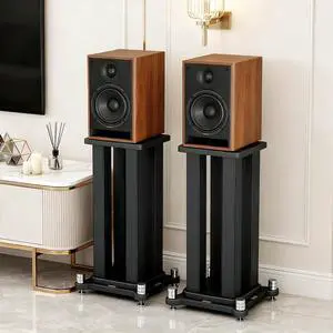 A Pair of Speaker Stands, Heavy Duty Speaker Stand Holds Bookshelf/Satellite/Large Speaker, Vibration-Absorbing MDF Design, 1.961.96in Metal Column Support,Holds 88lbs Speaker (Teak, 19.6in)