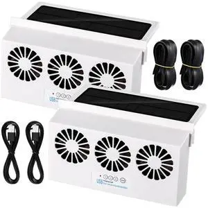 Tujoe 2 Pack Solar Powered Car Exhaust Fan 3 Fans Car Window 4500 RPM Air Vent Radiator Solar Energy Cooling Vent Exhaust for General Types(Rechargeable & Solar 3 Fans,White)